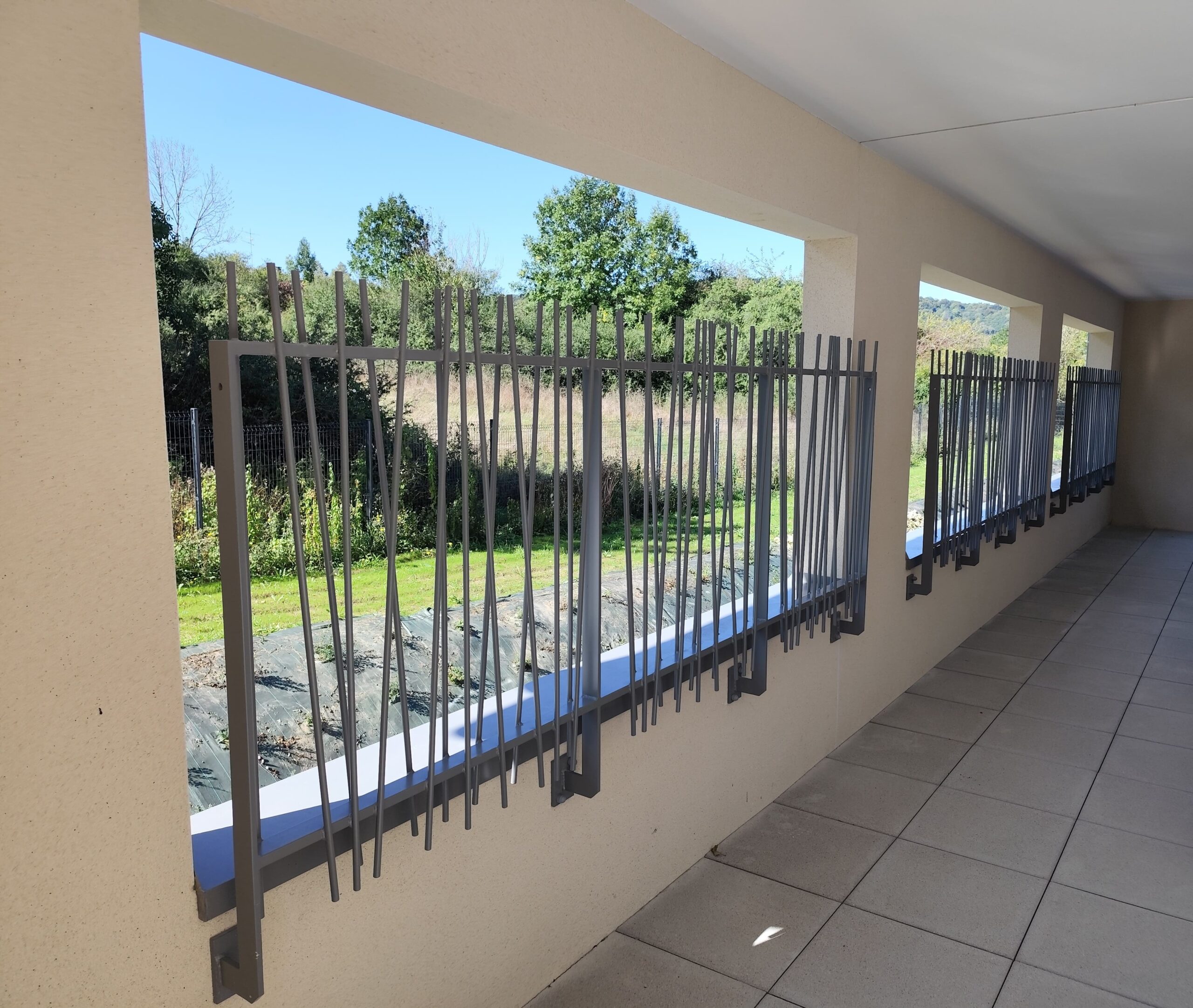 Construction de 48 logements à Blénod les Pont à Mousson (54) Réalisation de 200 ml de garde-corps extérieurs de balcon avec remplissage en métal déployé et 80 ml de mains courantes. Réalisation des ensembles d’entrée acier
