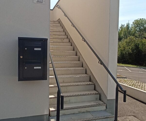 Réalisation des ensembles d’entrée en acier vitré, des portes coulissantes automatiques, des ensembles boites aux lettres, panneau d’affichage, des garde-corps vitré aluminium avec recouvrement du nez de dalle et des pare-vue vitrés sur balcons.